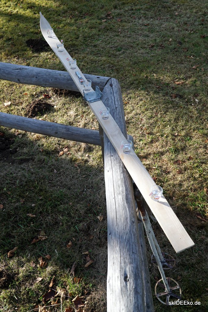 Das Lärchenholz bzw. der Ski an sich sind ca. 70 Jahre alt. Da der Ski noch nie gefahren wurde, ist dieser in absoluter optischer Topform: keine Löcher, wo die Bindung vormontiert war – keine Risse, wo jemand gegen den Baum gefahren ist.