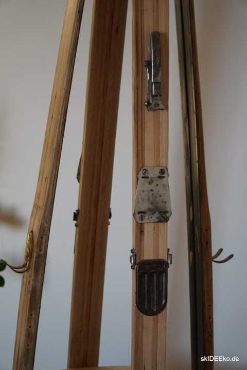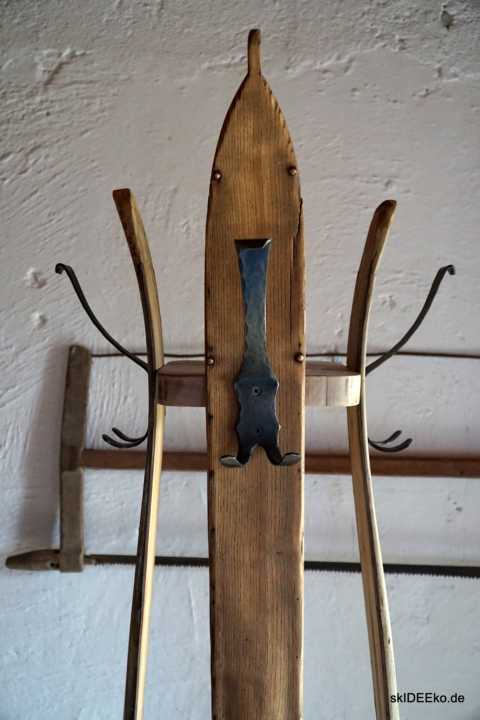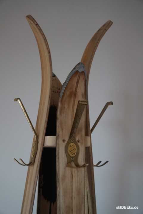Der Ski-Kleiderständer besteht aus zwei Paar historischen Skiern aus Holz, welche wieder in Best-Form gebracht wurden!
